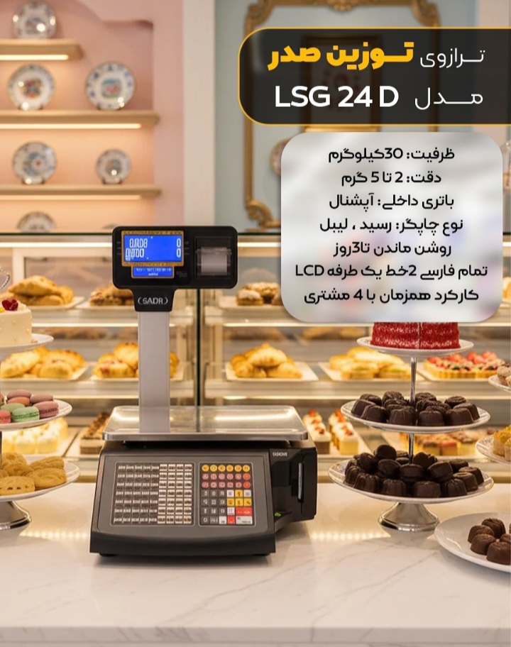 ترازوی لیبل پرینتر مدل LSG 24D ساخت شرکت مهندسی توزین صدر یک شرکت ایرانی بوده که مطابق با استانداردهای جهانی توزین در پی تولید ترازوهای لیبل زن همسان با نیاز بازار است و در این راستا تولیدات متنوعی از گروه ترازوهای لیبل پرینتر را به بازار ارائه نموده است. شرکت فنی مهندسی توزین صدر یکی از برندهای مطرح در گروه ترازوهای دیجیتال فروشگاهی بارکد پرینتر و لیبل پرینتر می باشد.