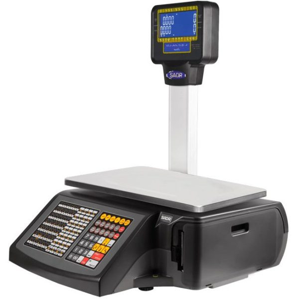 4- دستگاه اتوماسیون ترازو لیبل پرینتر LSG24 توزین صدر از نظر ساختار ظاهری به صورت علمک دار طراحی و تولید می شود، بنابراین جایگاه نمایشگر ترازو لیبل پرینتر LSG24 توزین صدر بر روی علمک یا همان ستون ترازو می باشد. نمایشگری از نوع ال سی دی با نور پس زمینه آبی رنگ سایز بزرگ که با وضوح بسیار بالا می تواند اطلاعات قیمت واحد 8 رقم، قیمت کل 8 رقم، وزن کالا 5 رقم و پارسنگ 4 رقم را نمایش دهد. دو طرفه بودن صفحه نمایشگر LCD دستگاه ترازو لیبل پرینتر LSG24 توزین صدر اطلاعات توزین را برای مشتری و کاربر به نمایش می گذارد، همین طراحی در جلب اعتماد مشتری کمک بسیاری خواهد کرد.