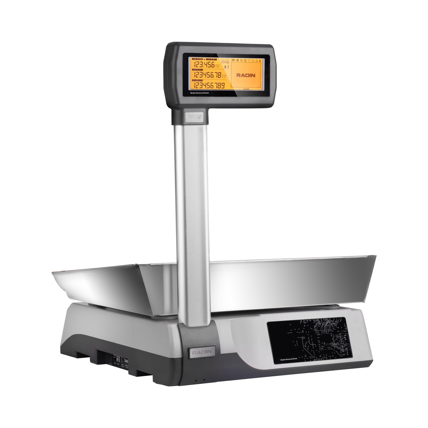 نمایشگر بزرگ LCD هفتاینچی دوطرفه، از نقاط قوت شاخص این مدل از ترازوی رادین است. این نمایشگر صنعتی، اطلاعات فروش را با وضوح بسیار بالا به فروشنده و مشتری نمایش میدهد. کاربری ساده و سرعت واکنش دکمهها، تجربهای روان و سریع از کار با ترازو فراهم میآورد.
