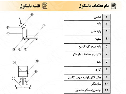 قسمت های مختلف باسکول 100 کیلویی پیام توزین مدل TS100 :