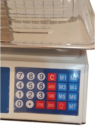 نمایشگر دوطرفه برای مشتری هم تعبیه شده است تا او هم از وزن و قیمت خریدش آگاه باشد و حساب جیبش را بکند و هم بداند هر گرم بر روی سینی این ترازو قیمت دارد و محاسبه میشود. سبکی و سادگی دو مفهوم کلیدی در این ترازوی علمک دار 40 کیلوییاند. سبکی ترازو همواره میتواند امکان جابهجا شدن آن را تضمین کند و سادگی در طراحی، همچون طراحی UI و UX در دیجیتال مارکتینگ، همان اثرگذاری را در شیوۀ استفادۀ بهینۀ کاربر از دستگاه دارد. کیبورد چندان پیچیده نیست و رنگبندی تفکیک مناسبی انجام داده تا کیبورد اعداد از دکمههای عملکردی جدا شوند.