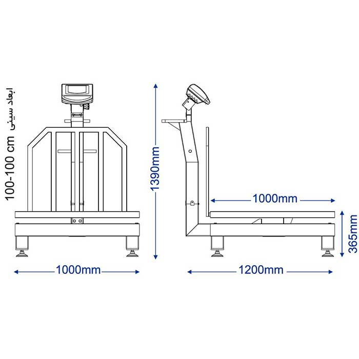 جنس سینی ورق گالوانیزه و ابعاد کفه توزین 100*100 سانتی متر